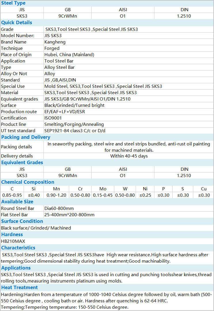 GB 9CrWMn/AISI O1/DIN 1.2510/JIS SKS3