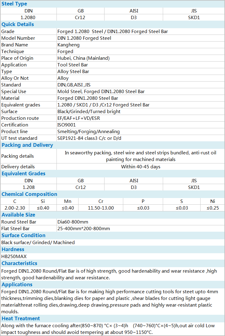 GB Cr12/AISI D3/DIN 1.2080/JIS SKD1
