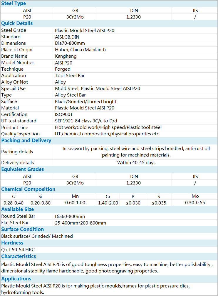 GB 3Cr2Mo/AISI P20/DIN 1.2330