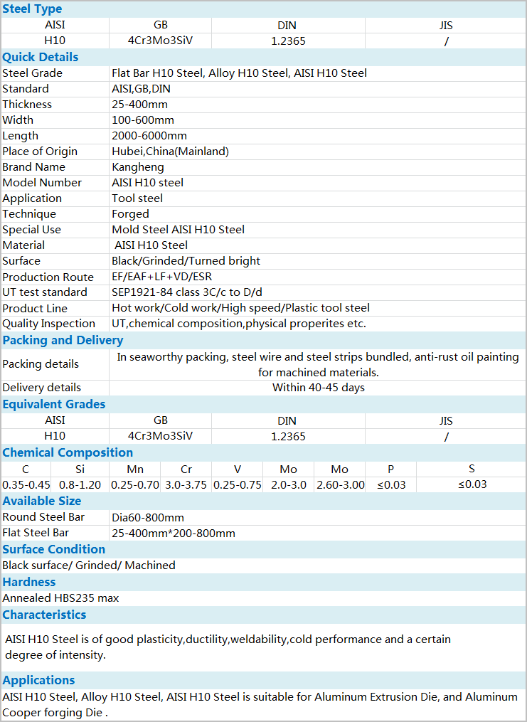 GB 4Cr3Mo3SiV/AISI H10/DIN 1.2365