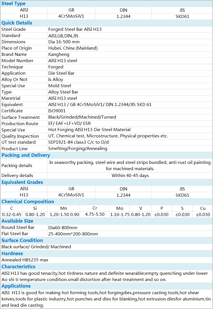 GB 4Cr5MoSiV1/AISI H13/DIN 1.2344/JIS SKD61