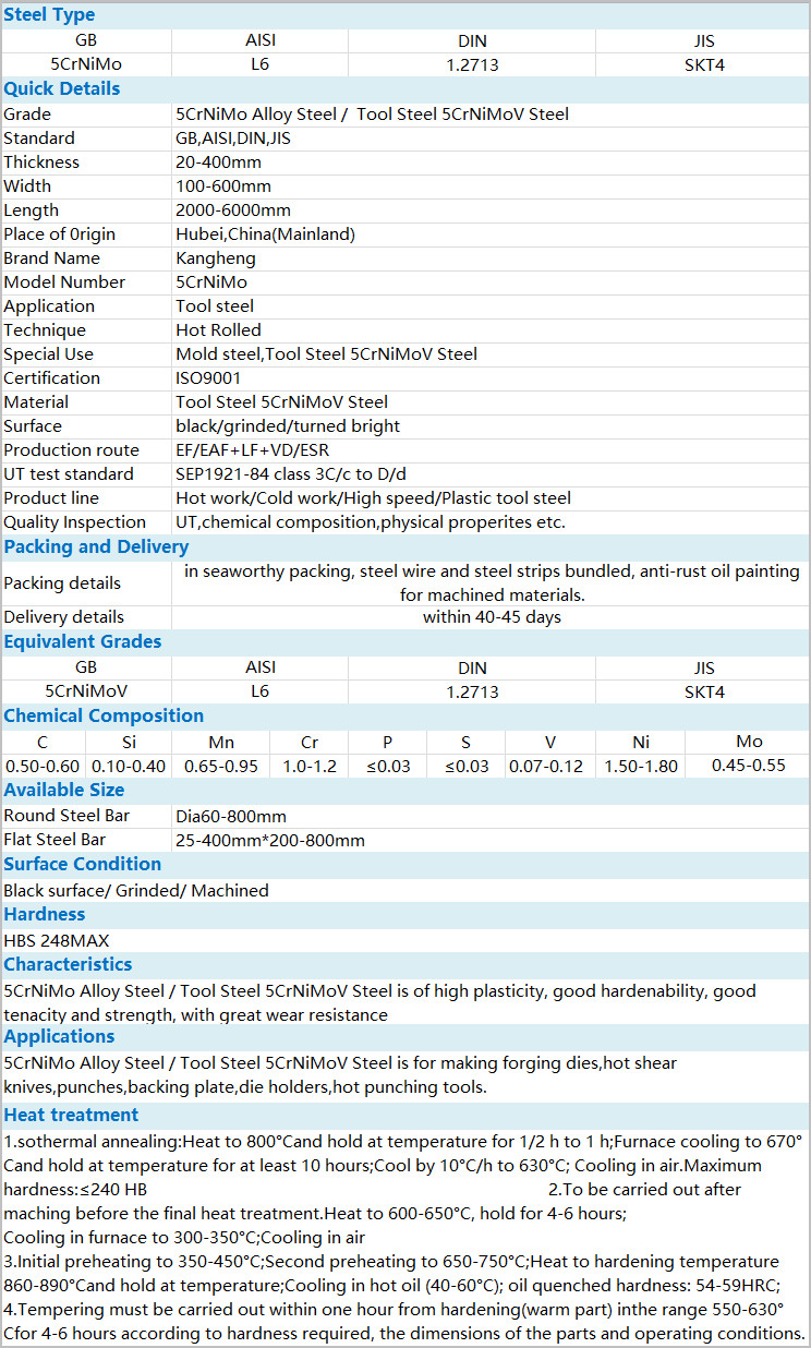 GB 5CrNiMo/AISI L6/DIN 1.2713/JIS SKT4