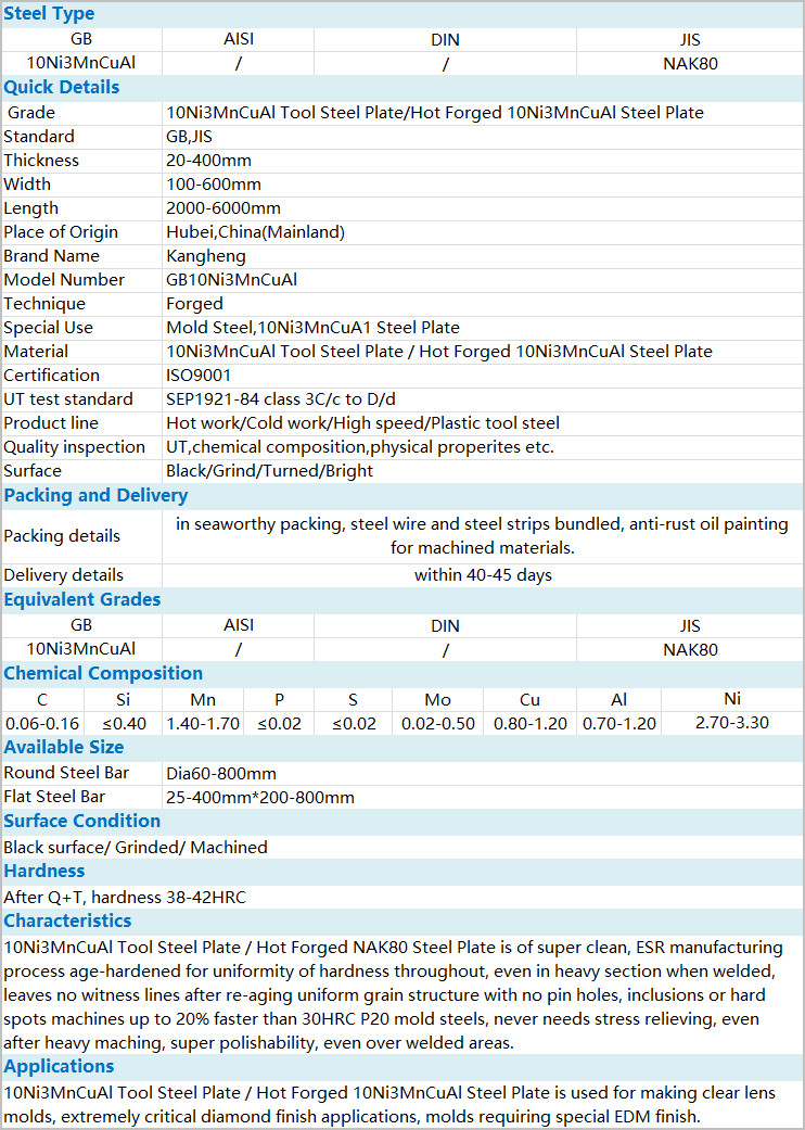 GB 3Cr2NiMnMo/AISI P20+Ni/DIN 1.2738