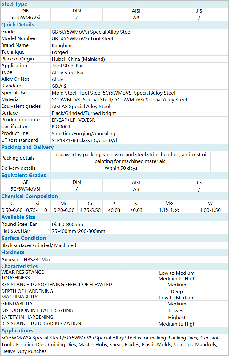 GB 5Cr5WMoVSi/AISI A8