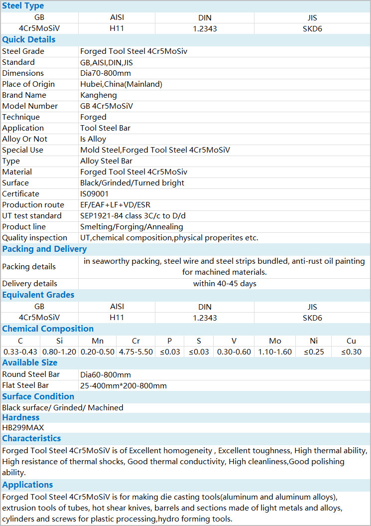 GB 4Cr5MoSiV/AISI H11/DIN 1.2343/JIS SKD6