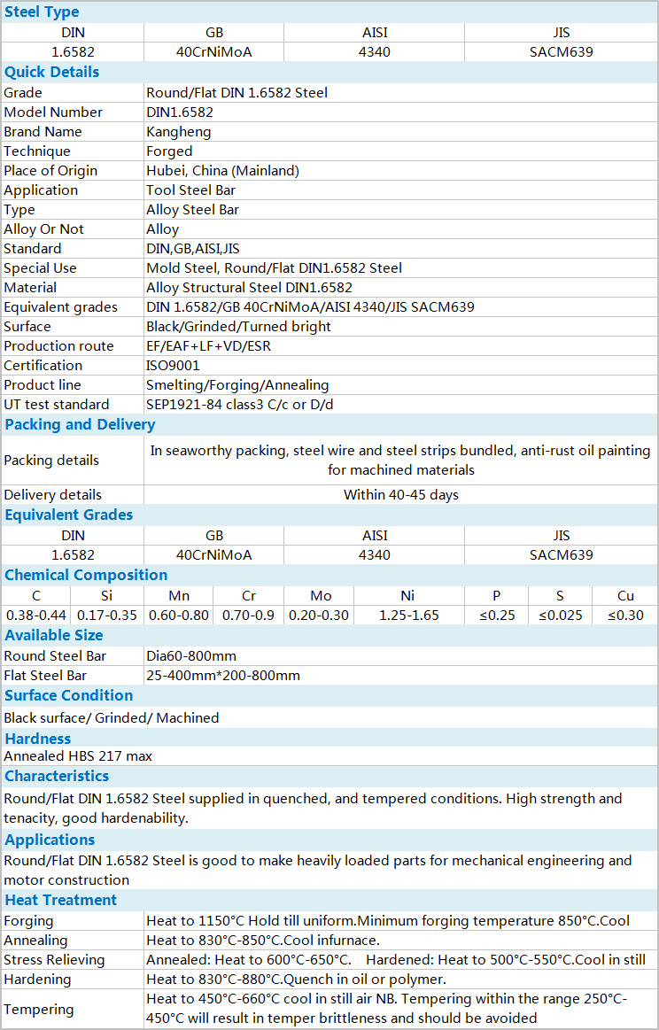 GB 40CrNiMoA/AISI 4340/DIN 1.6582/JIS SACM639