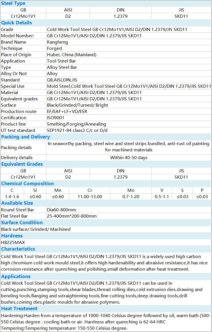 GB Cr12Mo1V1/AISI D2/DIN 1.2379/JIS SKD11
