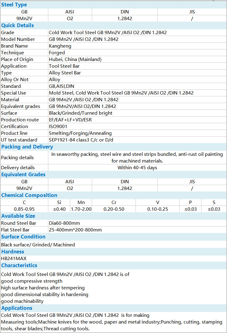 GB 9Mn2V/AISI O2/DIN 1.2842