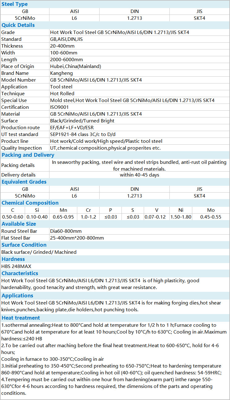 GB 5CrNiMo/AISI L6/DIN 1.2713/JIS SKT4