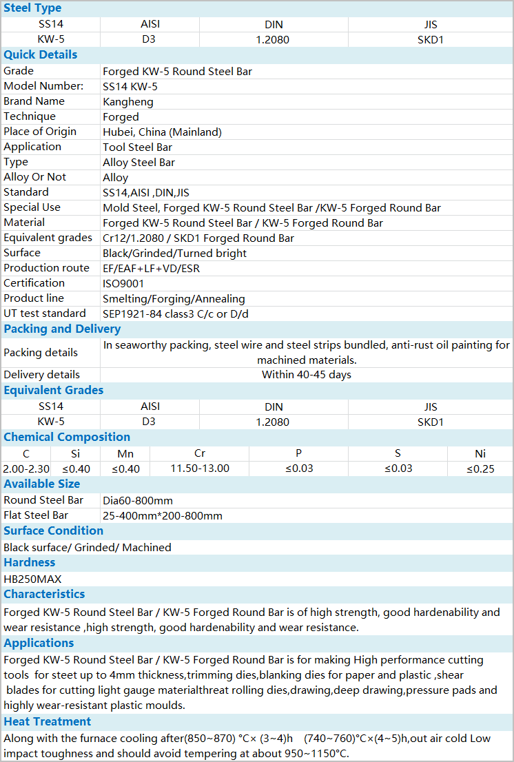 GB Cr12Mo1V1/AISI D2/DIN 1.2379/JIS SKD11