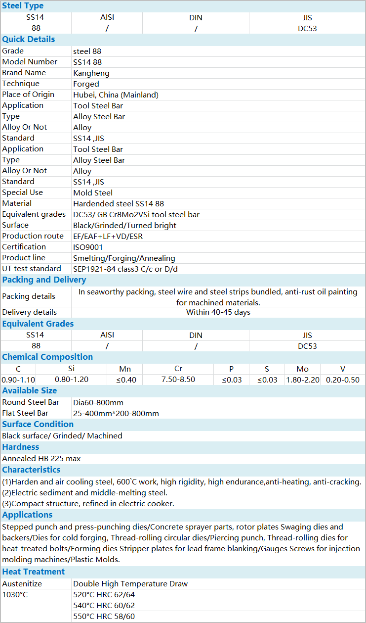 GB 4Cr5MoSiV1/AISI H13/DIN 1.2344/JIS SKD61