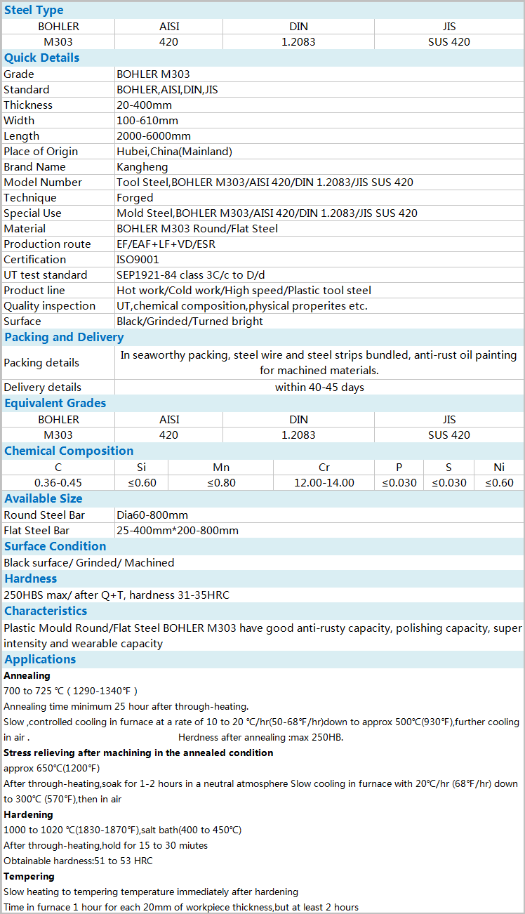 GB 4Cr13/AISI 420/DIN 1.2083/JIS SUS420